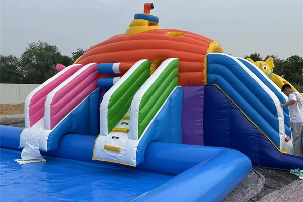 1. Material and design characteristics The PVC inflatable castle is mainly made of high-strength polyvinyl chloride (PVC) mesh fabric, combined with hot-dip galvanized steel frame or anchoring device, and has the following characteristics: Durability: Made of thickened PVC waterproof fabric, it has strong tensile strength and excellent tear resistance. Safety: The four fold stitching process and reinforced seam design reduce the risk of air leakage; Portability: Foldable design, equipped with a blower and maintenance kit, suitable for temporary activities. Customization: Supports personalized patterns, colors, and brand logo printing to meet commercial promotion needs. 2. Scene adaptation: Outdoor activities require the selection of UV resistant coating products; Lightweight design can be given priority in shopping malls or indoor spaces.